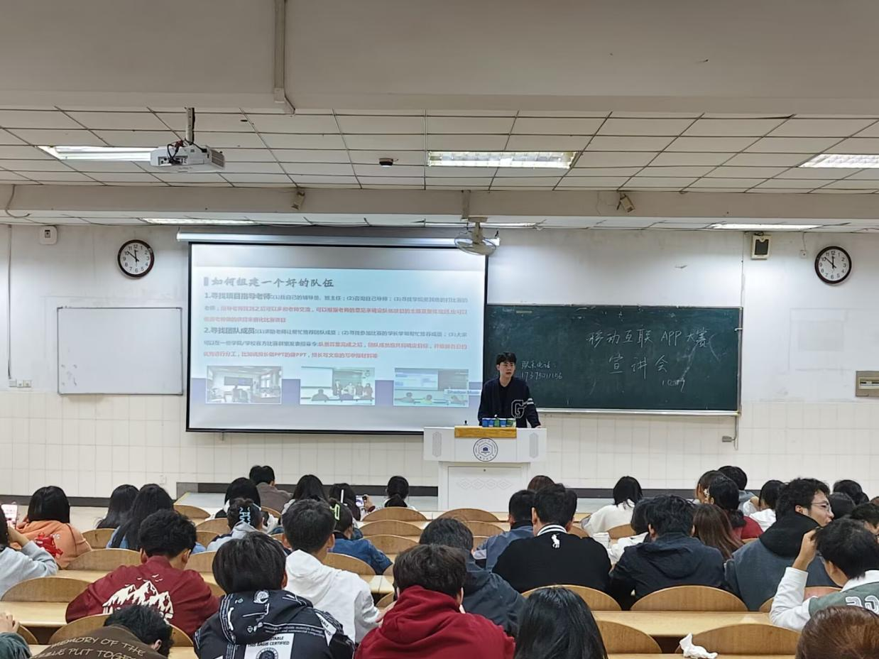 为做好第七届“宝葫芦杯”移动互联APP大赛的宣传报名工作,搭建互联网创新育人的平台,10月19日,管工学院在阶教101举办赛事宣讲活动。活动由信管源动力协会沈昭旭主讲,学院各年级学生代表300余人参加。