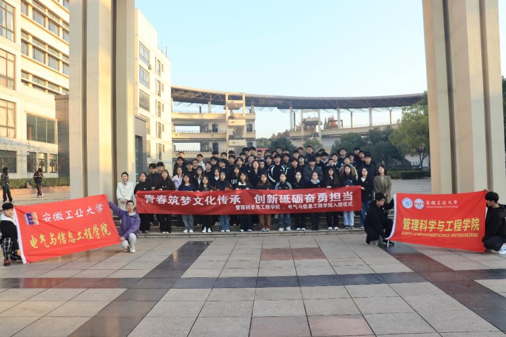 为深入学习贯彻习近平总书记考察安徽重要讲话精神,激励广大团员青年勇担青春使命、争做时代新人,12月2日,管工学院、电气学院在秀山校区国旗下联合举办2024年下半年入团仪式暨“青春筑梦文化传承、创新砥砺奋勇担当”学习宣传活动。管理科学与工程学院团委书记赵玉婷、电气与信息工程学院团委书记甘如美江、2024年下半年新发展团员及入党积极分子共300余人参加活动。