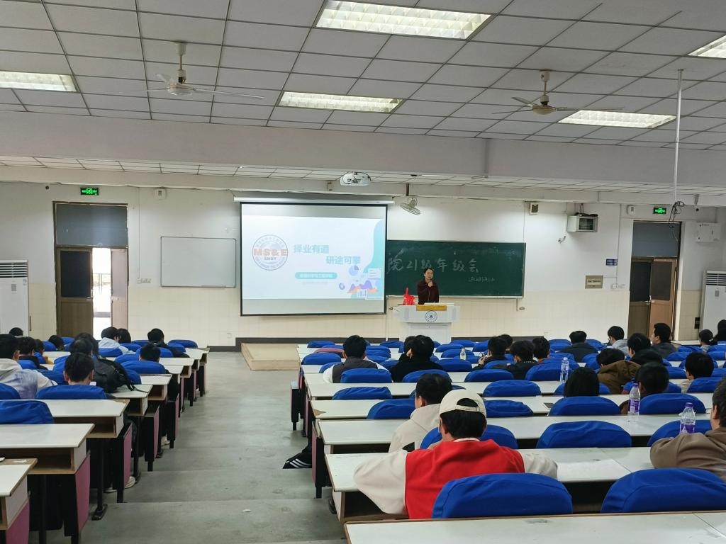 2月28日下午,管理科学与工程学院2021级在东阶102、103教室召开了以“择业有道 研途可攀”为主题的就业指导会。会议由2021级辅导员任静、钱丹丹主持,全体2021级学生参加。就业指导会聚焦考研复试技巧、调剂院校选择以及企业面试策略,旨在为即将面临毕业选择的学生提供实用指导。