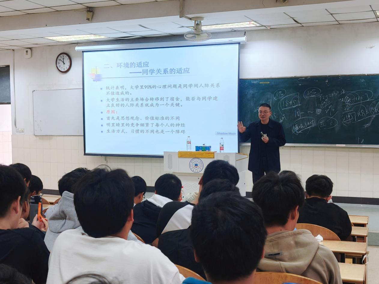 为帮助新生更好地适应大学生活,顺利开启人生新征程,10月21日,管理科学与工程学院于阶教101开展《调整自我,从容生活》大学生入学适应心理健康讲座,本次讲座由学院党委书记王军教授主讲,2024级全体新生参与。