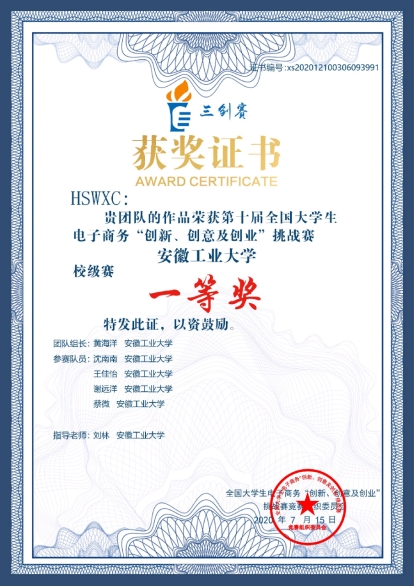 王佳怡,女,1999年9月生,安徽工业大学管理科学与工程学院信息管理与信息系统专业2018级本科学生。前三学年综测排名专业第2,获得校一等奖学金2次,二等奖学金1次,校三好学生3次,英语四六级均530+,大学期间积极参与各项学科竞赛,并获得多项国家级、省级等奖项。以第一作者身份发表核心期刊论文1篇,以第一发明人身份获批实用新型专利1项。于2021年暑期共参加多所高校的暑期夏令营活动,并获得2所985、4所211高校“优秀营员”的荣誉称号,最终被华中科技大学拟录取。