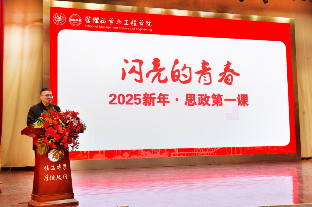 院党委书记王军讲授2025新年·思政第一课。王军在讲话中回顾了一年来学院在学术交流、教学科研、招生就业、育人实践等方面取得的成绩,向受到表彰的先进集体和个人表示祝贺,号召全体同学以受表彰的先进集体和个人为榜样,在工大求真学问、练真本领,锤炼敏锐的洞察力和活跃的创新思维,努力成长为引领未来的卓越人才。他围绕“我们青春的奋斗到底在哪里?”对青年提出四个奋斗方向:一是要在仰望星空中立大志,升华人生境界,实现人生价值;二是要在至诚至善中明大德,坚持自立自律,守望精神家园;三是要在厚学笃行中成大才,矢志知行合一,追求经世致用;四是要在立定脚跟中担大任,静观世界风云,勇立时代潮头。王军寄语同学们要秉持立大志、明大德、成大才、担大任的青年先锋精神,踏上奋斗之路,绽放理想之花,成就属于自己的美好未来!