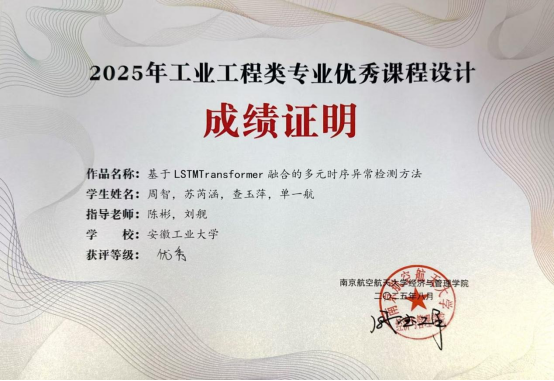 近日,第二十届“东风日产杯”清华IE亮剑全国工业工程创新大赛暨中国创新方法大赛在北京圆满落幕。我校管理科学与工程学院周智、苏芮涵等同学提交的团队作品《基于LSTM-Transformer融合的多元时序异常检测方法》,在创新方法专项赛中表现突出,荣获全国一等奖。管理科学与工程学院陈彬、刘舰担任项目指导老师。