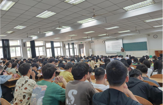 5月13日下午,管理科学与工程学院党委书记王军在秀山校区东教一阶201教室为全院教师党员、学生党员上党纪学习教育专题党课。